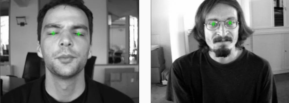 这个数据集包含了1521幅分辨率为384x286像素的灰度图像。每一幅图像来自于23个不同的测试人员的正面角度的人脸。为了便于做比较,这个数据集也包含了对人脸图像对应的手工标注的人眼位置文件。图像以 "BioID_xxxx.pgm"的格式命名,其中xxxx代表当前图像的索引(从0开始)。类似的,形如"BioID_xxxx.eye"的文件包含了对应图像中眼睛的位置。