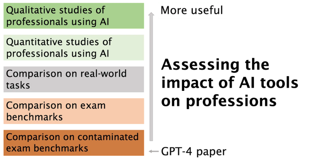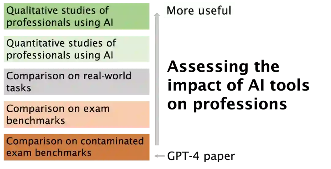 但这仍然是个错误的问题。与其用独立的基准,我们或许更应该衡量语言模型能在多大程度上完成专业人员必须完成的所有现实任务。例如,在学术界,我们经常会遇到一些我们不熟悉的领域的论文,其中充满了专业术语;如果 ChatGPT 能够以一种更容易理解的方式准确地总结这样的论文,那就很有用了。有些人甚至还测试过这些工具是否能做同行评议。但即使是这个场景,你也很难确保用来测试的题目没有包含在训练集里。