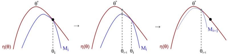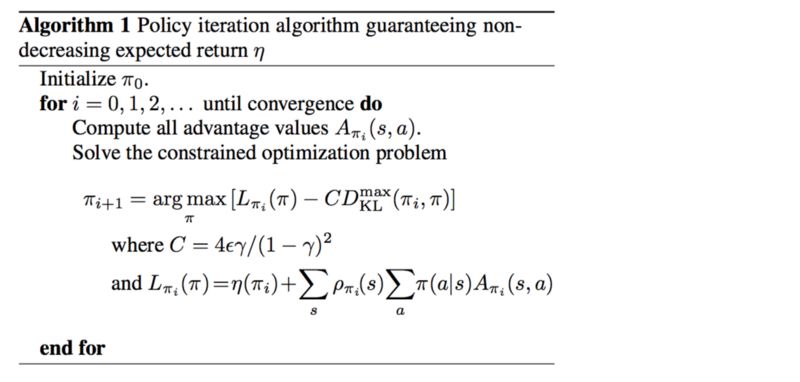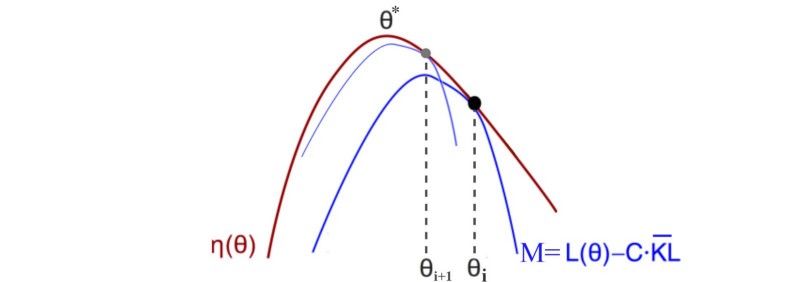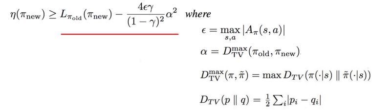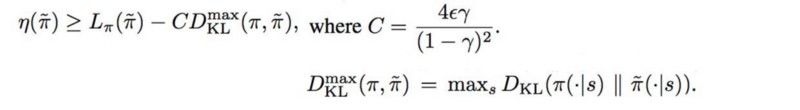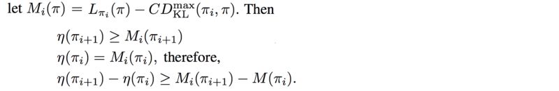 当 KL( θi, θi )=0 时, M 在近似于预期的奖励的局部值:这是对MM算法的要求。接下来我们讨论下界函数M的细节 。TRPO 论文附录A中的两页证明 η的有一个确定的下限 。
