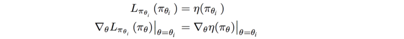 在当前的政策θi 中,我们可以证明 L 与 η 的第一个阶导数相同。