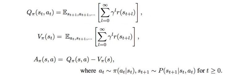 首先,我们先定义Q值函数、状态值函数和优势函数。直接书写如下: