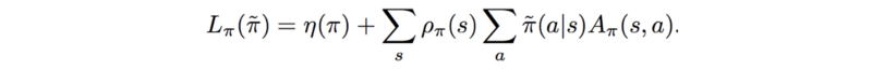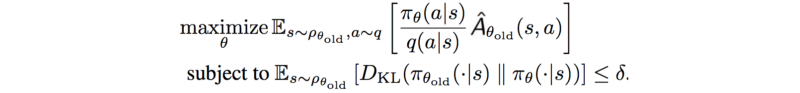 简而言之,我们想最大化优势函数:动作值函数(奖励的最大期望)减去对应状态拥有的基准值。约束条件为新旧策略的差异不能过大。本文余下部分将数学证明该约束问题。