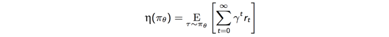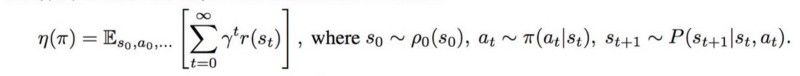 RL( Reinforcement Learning即强化学习) 的目标就是最大化预期折扣奖励(the expected discounted rewards)。下图之中,红色的线表示期望折扣回,其中 η 被定义为: