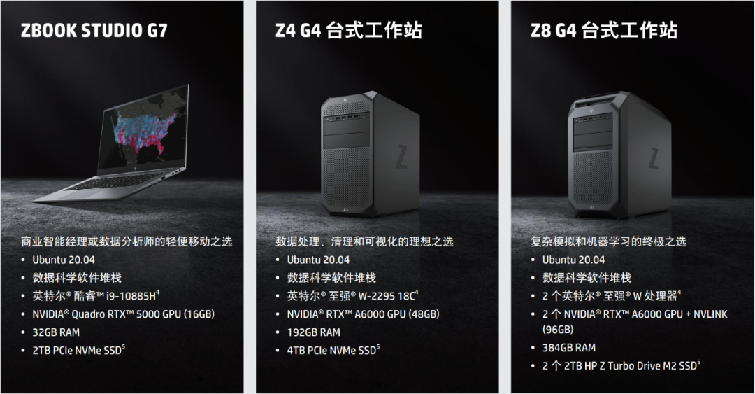 通过观察前沿科技和趋势,洞察用户需求,惠普打造了包含数据采集工作站、微型工作站、Z8 Multi-GPU 工作站、VR 可穿戴设备、以及 Data Science Stack 在内的「Z 系列」革命性产品。以多形态的产品满足不同场景的运算需求,以一体化的解决方案助力行业实现突破创新。