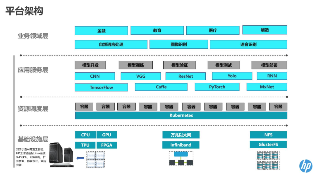 惠普还提出了 HP AI 开发平台,这是一款基于 Docker+Kubernetes 的人工智能容器云平台,能够实现异构资源的高效管理、调度和监控。提供了从模型开发、训练到部署的完整流程和工具,能够大幅度降低人工智能的进入门槛,提升开发效率。