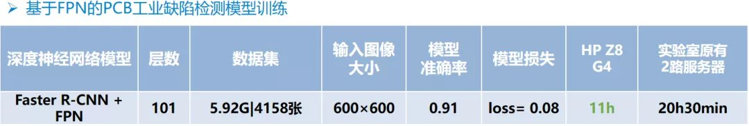 基于 Faster R-CNN 和 FPN 模型针对 PCB 工业缺陷识别进行训练,原本耗时超过 20h 的训练,使用 HP Z8 G4 仅需要 11h,节省了一半的时间。