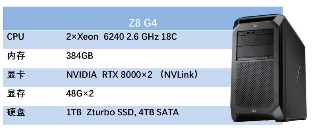 由于 HP Z8 G4 电源功率可以高达 1700W,支持三块双宽 GPU 卡或者四块单宽 GPU 卡,能够一次性加载更多视频 / 图片数据,搭配双路 CPU 和高速硬盘,能够显著提升训练速度。另外,惠普工作站可以长时间高负荷运行,适合实验室环境进行科研工作。