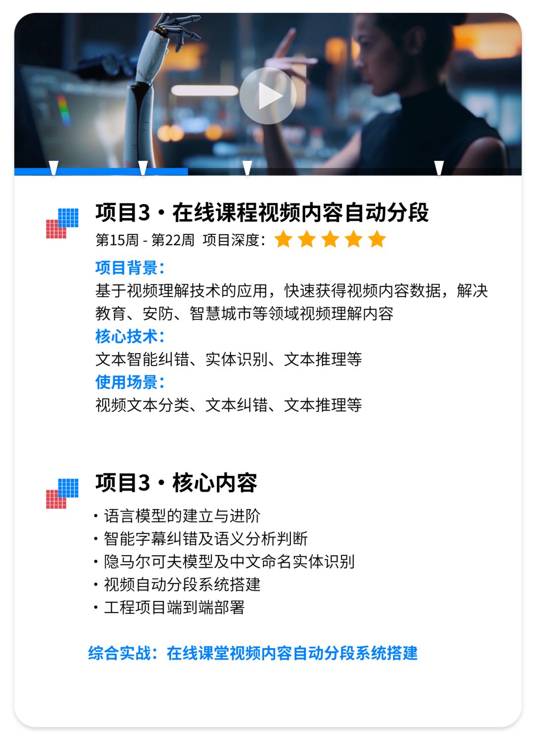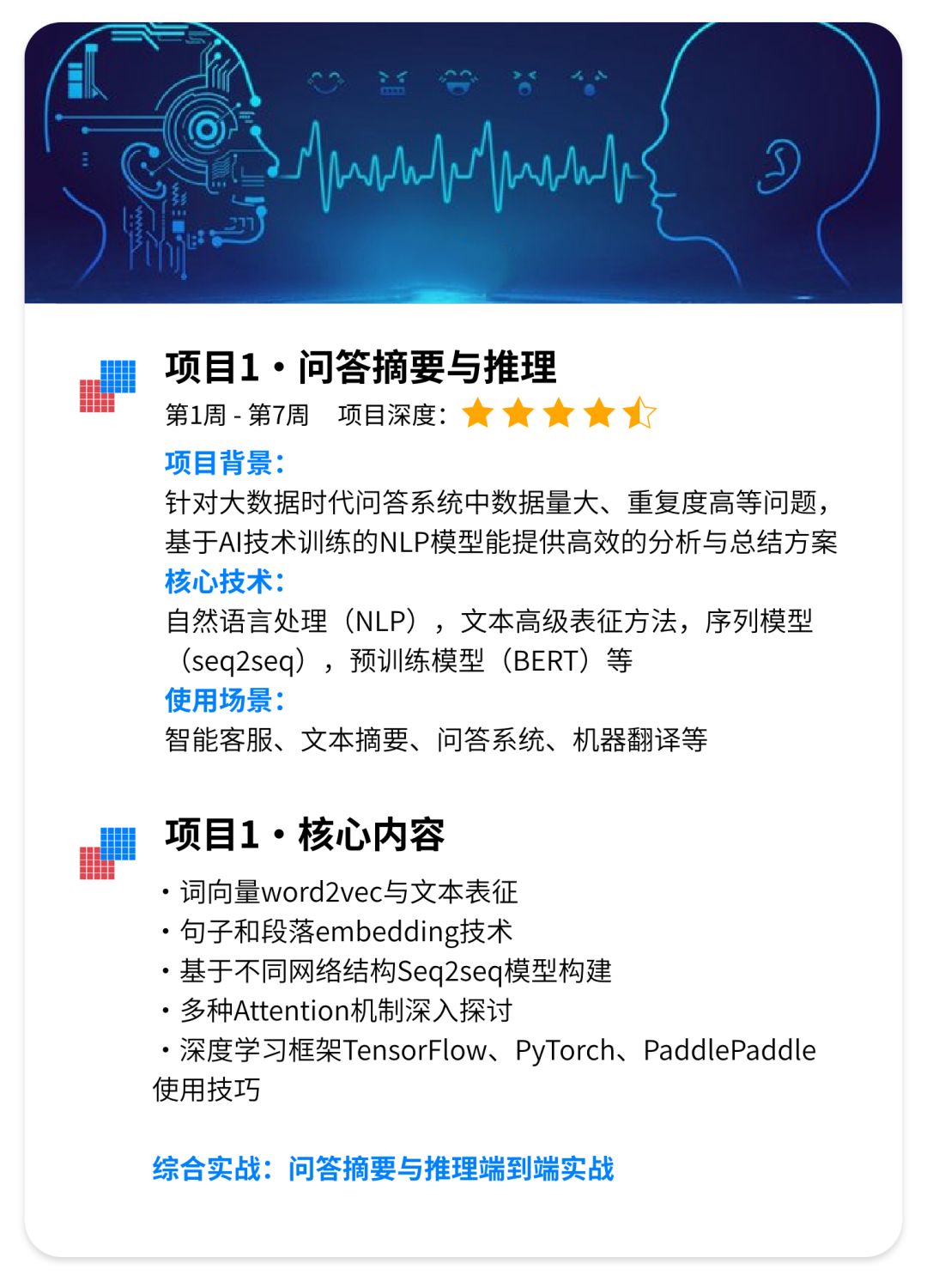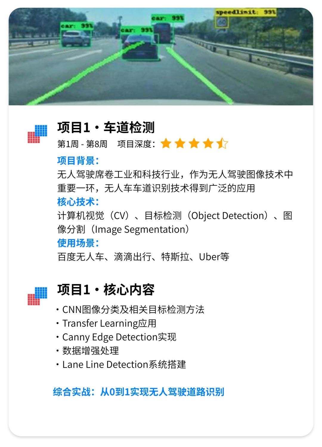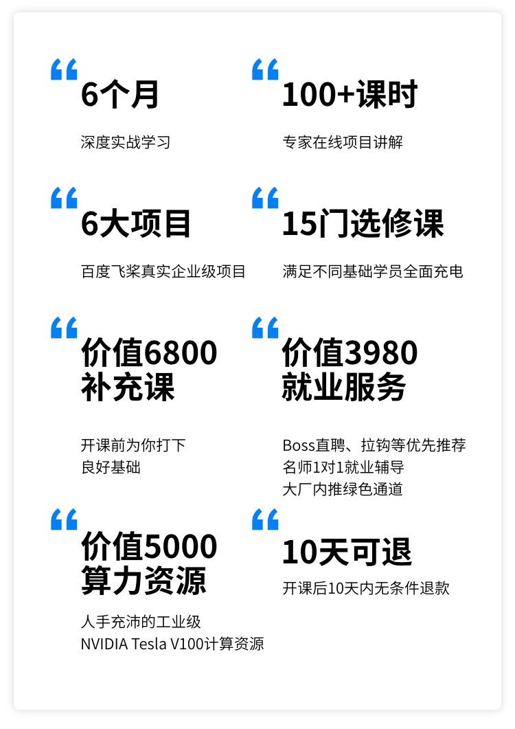 百度精选6大前沿AI项目,并提供企业真实应用的数据集供学员实战使用,旨在培养具有核心竞争力的AI工程师。