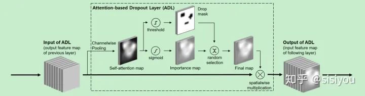做法:代替之前采用CAM得到特征的热力图**,模型使用(channel-wise pooling)直接生成热力图。**采用一个设定的阈值,得到一个drop mask。