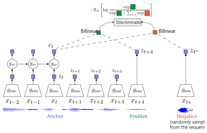 CPC的对比任务设置如下。设{x1,x2,…,xN}为数据点序列,xt为锚点。然后,