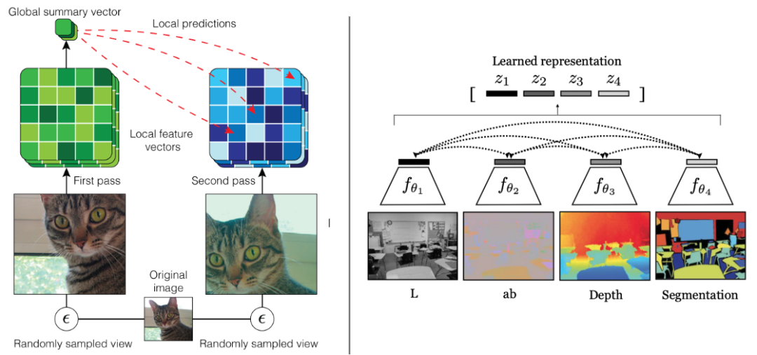 对比预测编码(CPC (van den Oord et al ., 2018) (https://arxiv.org/abs/1807.03748))是一种对比方法,可以应用于任何形式的可以表示为有序序列的数据:文字,语音,视频,甚至图片(一个图像可以看作是一系列像素或patch)。