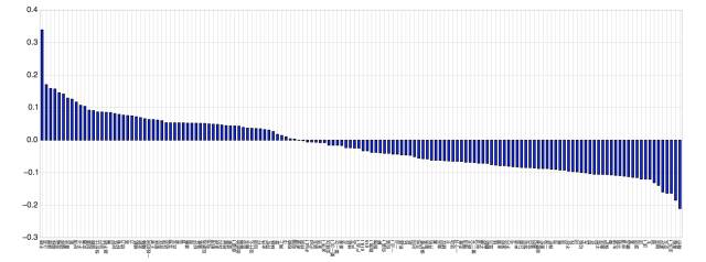 从此图来看,每一个参数都对sentiment有一定的影响,大部分都有比较强的相关性,这说明选出来的参数并不是随便乱选的。