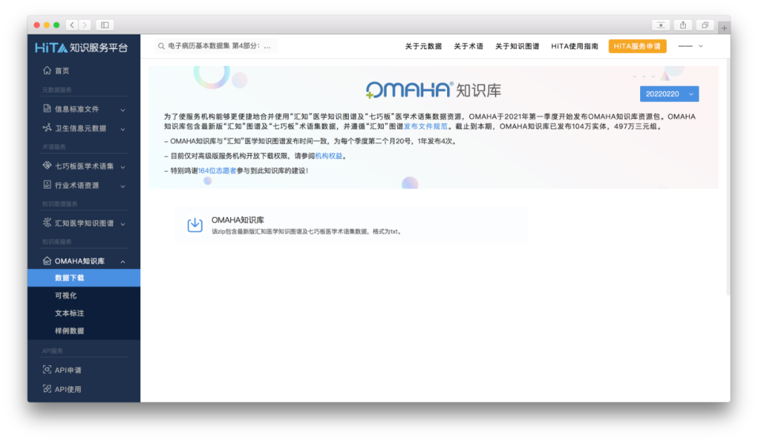 感兴趣的读者可以登录HiTA知识服务平台(hita.omaha.org.cn)下载知识图谱样例数据体验,也可以加入OMAHA获取全量“汇知”图谱资源。