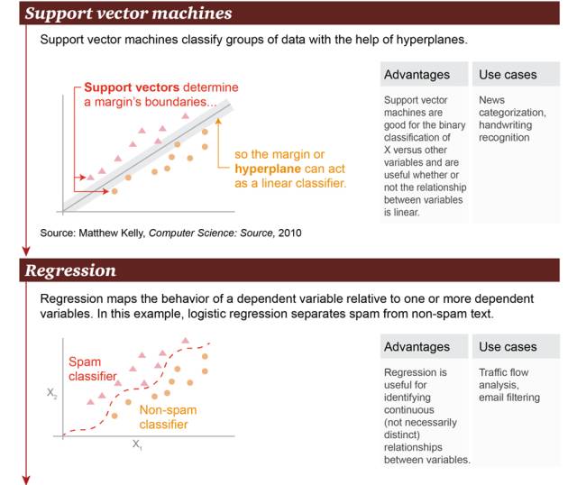 你应该使用哪种机器学习算法?这在很大程度上依赖于可用数据的性质和数量以及每一个特定用例中你的训练目标。不要使用最复杂的算法,除非其结果值得付出昂贵的开销和资源。这里给出了一些最常见的算法,按使用简单程度排序。