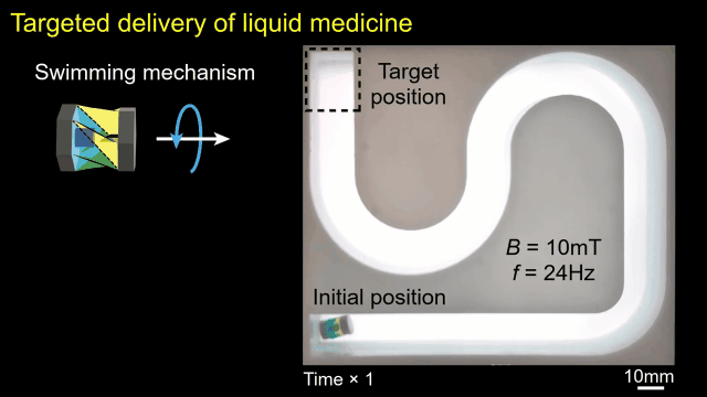 与吞服药丸或注射液体不同,递送药物的微型机器人会一直保留药物,直到到达目标,然后释放出高浓度药物。