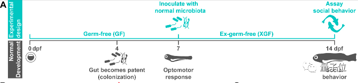 研究团队先对一部分胚胎消毒,再进行无菌化处理,去除其本身的微生物群,再在发育7天后,为其接种正常微生物群,观察其社交行为。