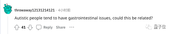 也有网友分享了自己的观察,自闭症往往伴随肠胃问题,两者也许有关。