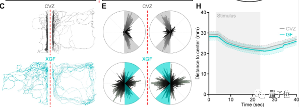 结果显示,无菌又植入微生物的斑马鱼(XGF组,下同)相比微生物组正常生长的对照组,社交行为频率明显减少。