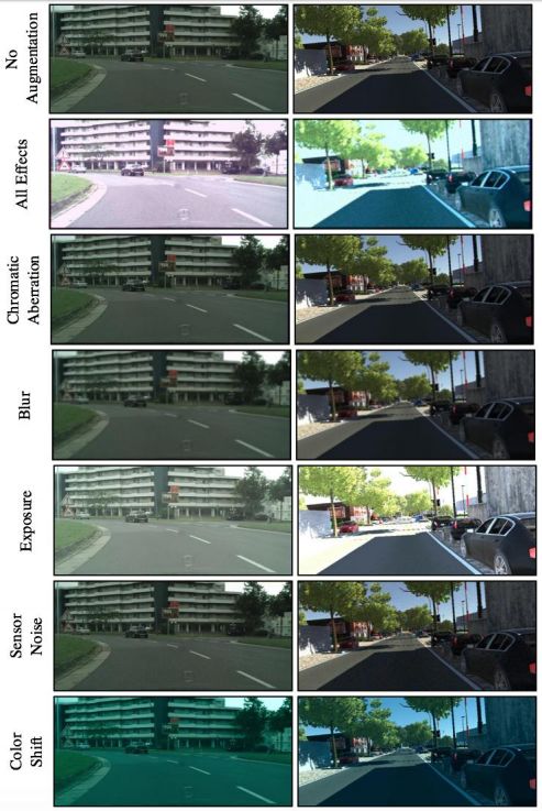 在本文中,我们研究了不同传感器模型的DNN性能对城市场景中自主驾驶计算机视觉任务的影响。我们提出,通过一种新的图像增强管道来对由传感器效应引起的信息缺失进行建模。我们的增强管道基于图像生成和处理过程中所产生的效应,这些效应会在学习框架过程中触发失效模式——色差、模糊、曝光、噪声和色偏校正。我们的目标是,通过在包含一组具有代表性实际传感器效应的数据上进行训练,从而在我们的学习框架中实现针对这些效应的鲁棒性。我们增强了真实数据和合成数据,以表明我们提出的方法提高了车辆数据集中目标检测的性能(图1)。软件和数据集将在完成盲审后公布。