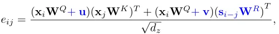 [3]提出了一种同时考虑query、key和相对位置交互的方法,用公式表示如下: