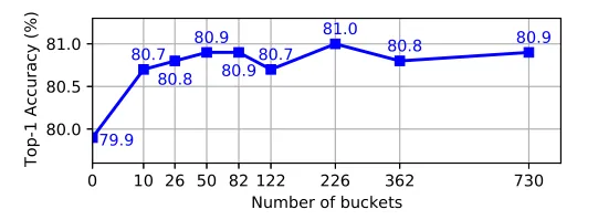 bucket数量影响了模型的参数,上图展示了不同bucket数量下,模型准确率的变化。