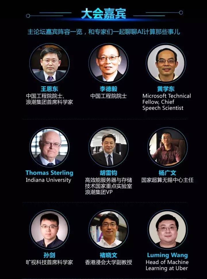 【新智元导读】首届AI计算大会。中国工程院王恩东院士、李德毅院士、微软技术院士黄学东、集群超算架构创始人Thomas Sterling、浪潮副总裁胡雷钧、国家超算无锡中心主任杨广文、百度人工智能技术委员会主席朱勇、旷视科技首席科学家孙剑、深度学习框架评测专家褚晓文、Uber机器学习主任王鲁明等业界专家,将带来人工智能计算与应用的精彩前沿报告。
