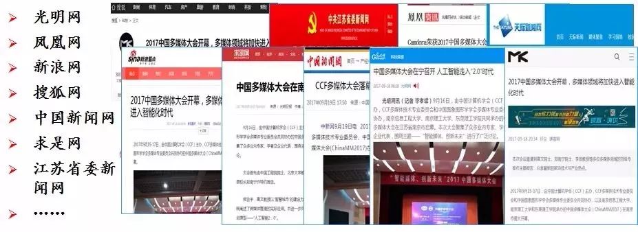 ChinaMM2017多媒体新技术成果展的成功举办,引起了媒体广泛关注。ChinaMM2017成果展吸引到商汤、快手、海康、百度、360、腾讯等十优秀企业以及清华、北大、中科院、北航等国内一流高校院所的五十余项创新技术参展,探索了产学研深度融合的办会模式。