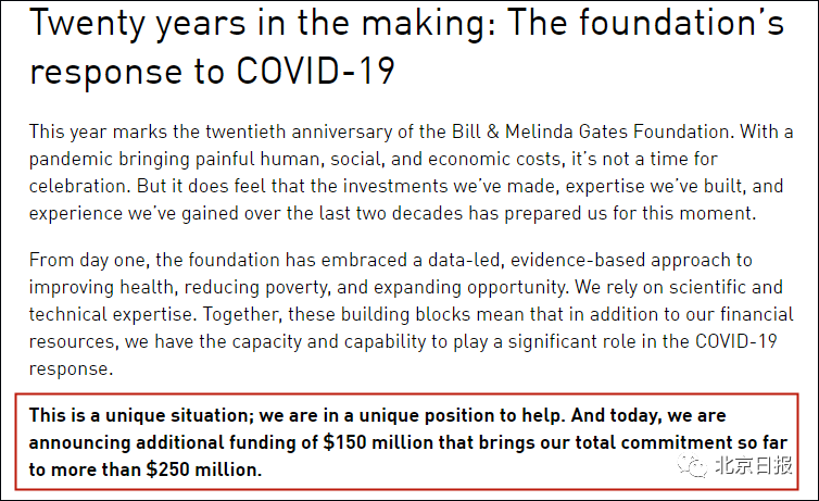 然而,比尔·盖茨及其基金会早在疫情爆发之初就积极参加抗疫,至今已投入数十亿美元为解决全球疫情而努力。