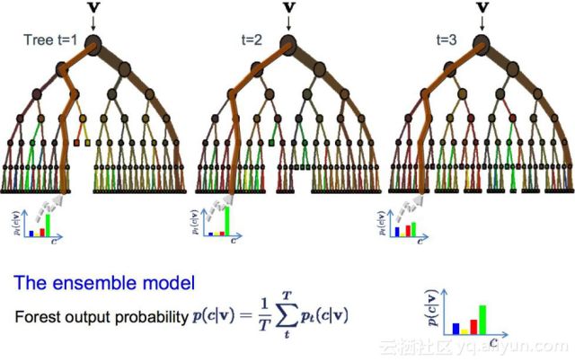 在Bagging中,可以用上述相同的方法估计整个数据模型,最常见的是决策树。选取训练数据中的多个样本,然后构建模型。当你需要预测新数据时,每个模型都会做出预测,取平均值后以便更好地估计真实输出值。