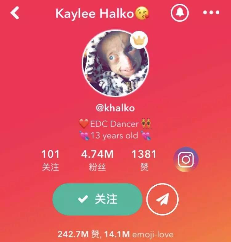 「Everyone is beautiful(每个人都是美丽的)」,这是musical.ly社区运营的核心准则之一。Kaylee Halko喜欢爵士、hip hop和音乐剧,她每天做着校园巴士上学,坚持报名舞蹈比赛,在musical.ly上她和一个金发的小姑娘比赛跑步,对方嗖地一下跳过围栏,她却被一个大石头绊住了脚步。