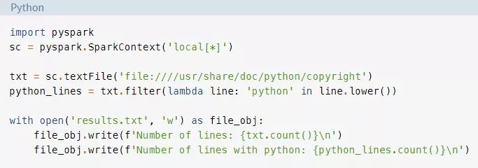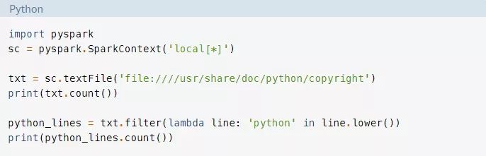 为了更好地理解PySpark的API和数据结构,请回忆一下我们前面提到的Hello World程序:
