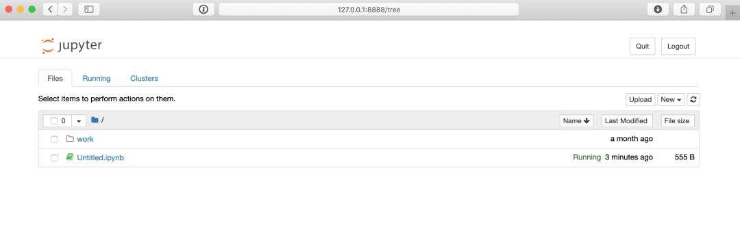 下面命令中的URL在你的机器上可能会略有不同,但是一旦你在你的浏览器中连接到该URL,你就可以访问一个Jupyter notebook环境了,该环境应该类似如下: