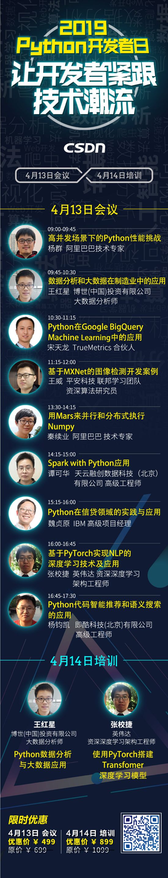 参加 2019 Python开发者日,请扫码咨询 ↑↑↑