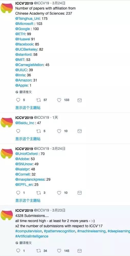 根据 ICCV 2019 在 Twitter 上公布的两组数字显示,