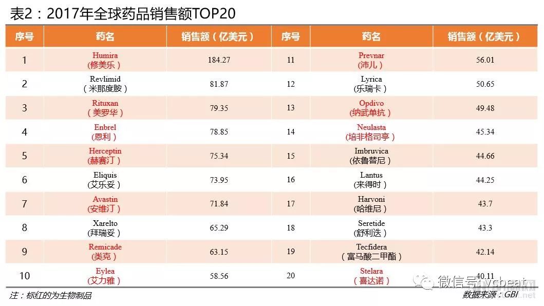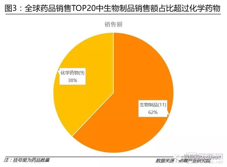 全球药品销售TOP20中,生物制品销售额占比超过化学药物