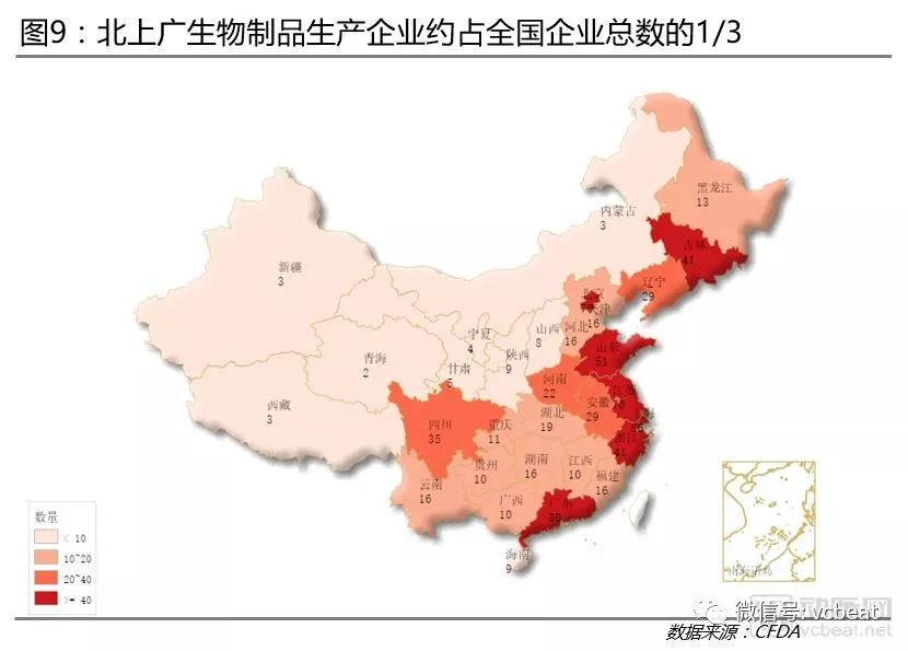 北上广生物制品生产企业约占全国企业总数的1/3