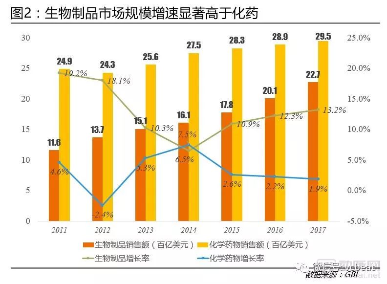 2017年生物制品市场规模增速达到13.2%,显著高于化药