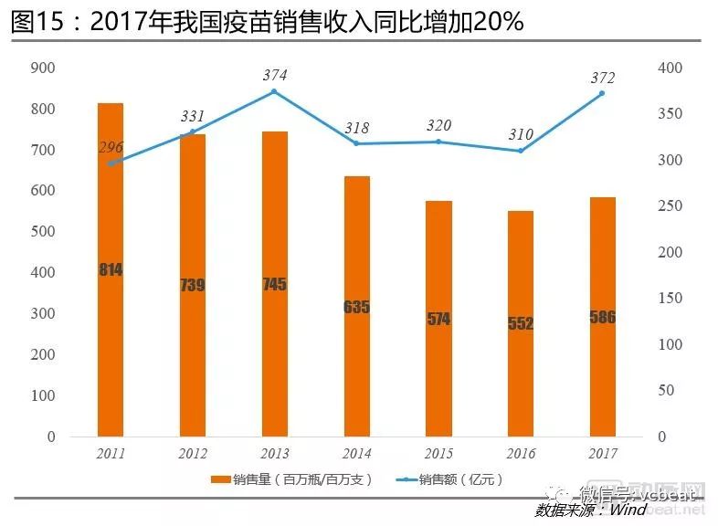2017年我国疫苗销售收入同比增加20%