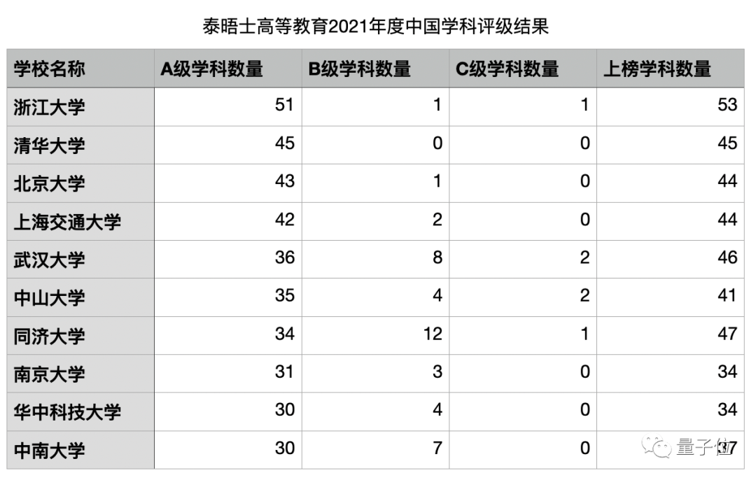 浙江大学,A级上榜学科最多,而且总上榜学科数也超过清北。