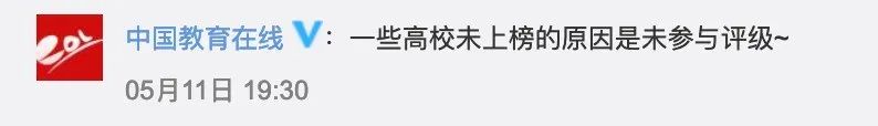 对此微博@中国教育在线回应称:是因为一些高校并没有参与评级。