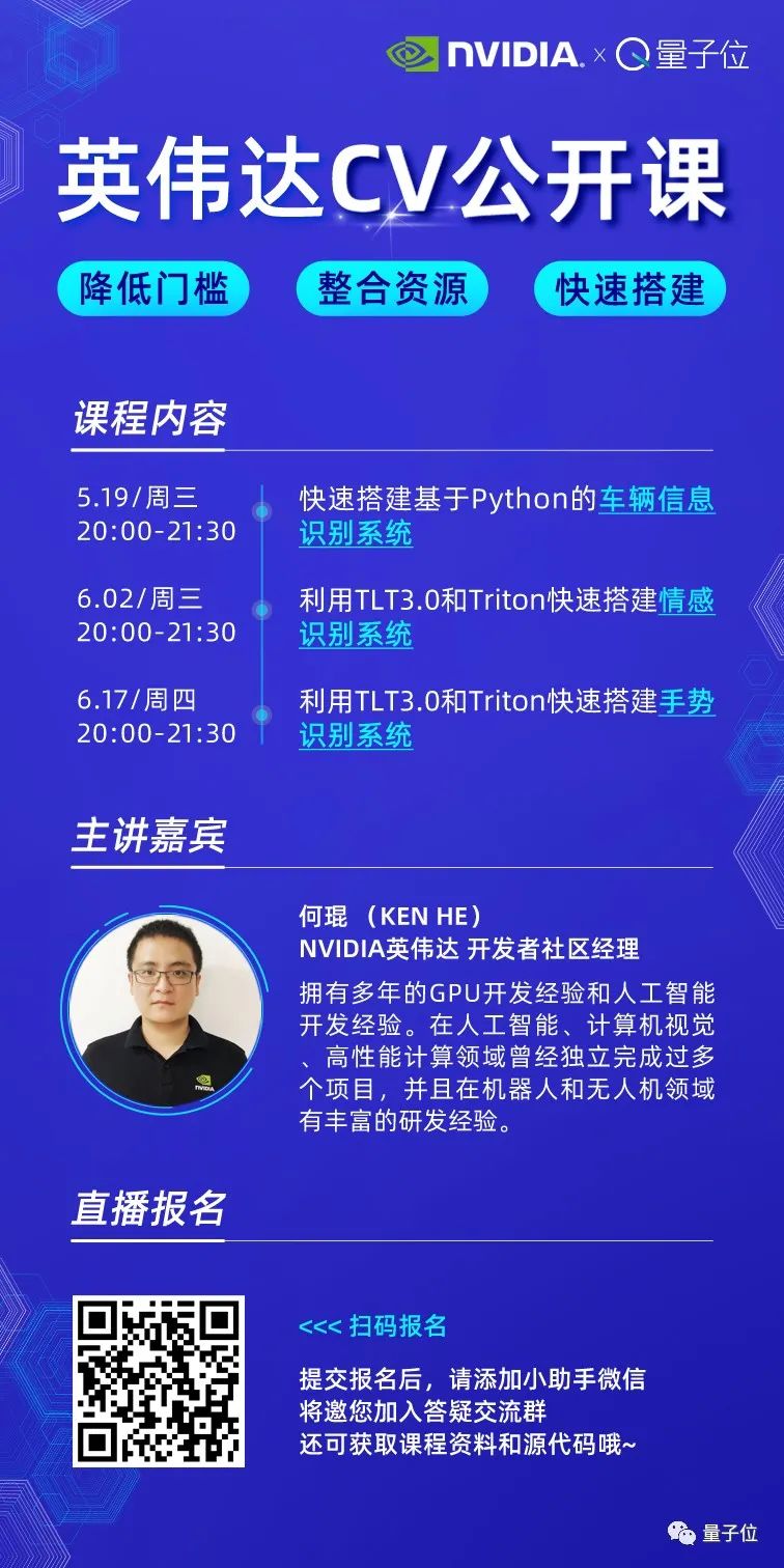 如何快速成为图像识别大神?英伟达专家手把手教你快速搭建AI模型并实现预训练、部署应用。理论+实战,开箱即用,欢迎扫码免费报名直播:
