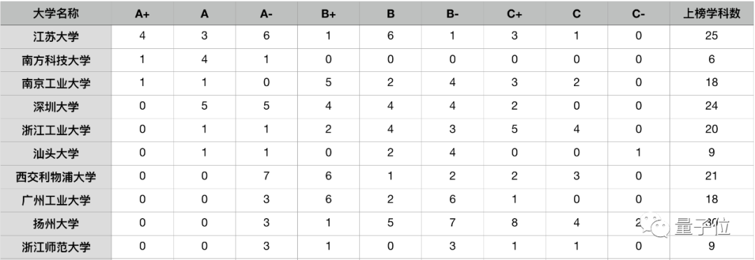 其中江苏大学表现最好,有4个A+学科(光学工程、仪器科学与技术、材料科学与工程、冶金工程),25个学科上榜;