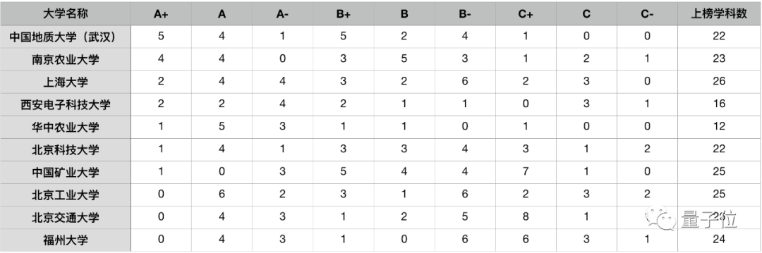 其中7所院校有学科入选A+,分别是中国地质大学(武汉)、南京农业大学、上海大学、西安电子科技大学、华中农业大学、北京科技大学和中国矿业大学。