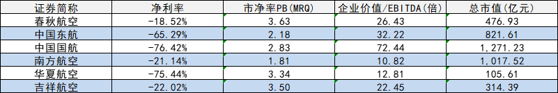 估值方面,截至7月20日收盘,与同业可比公司对比,2021Q1春秋航空净利率为-18.52%,远好于东航和国航的-65.29%、-76.42%,但春秋航空的EV/EBIT(企业价值/息税前利润)为26.43倍,低于东航和国航的32.22倍、72.44倍。