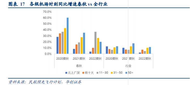 各级机场时刻同比增速;来源:民航预先飞行计划,华创证券