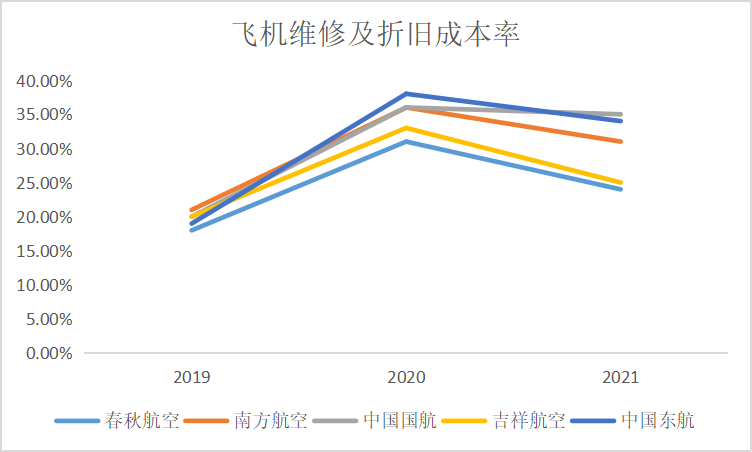 飞机维修及折旧成本率对比;来源:公司公告,36氪整理