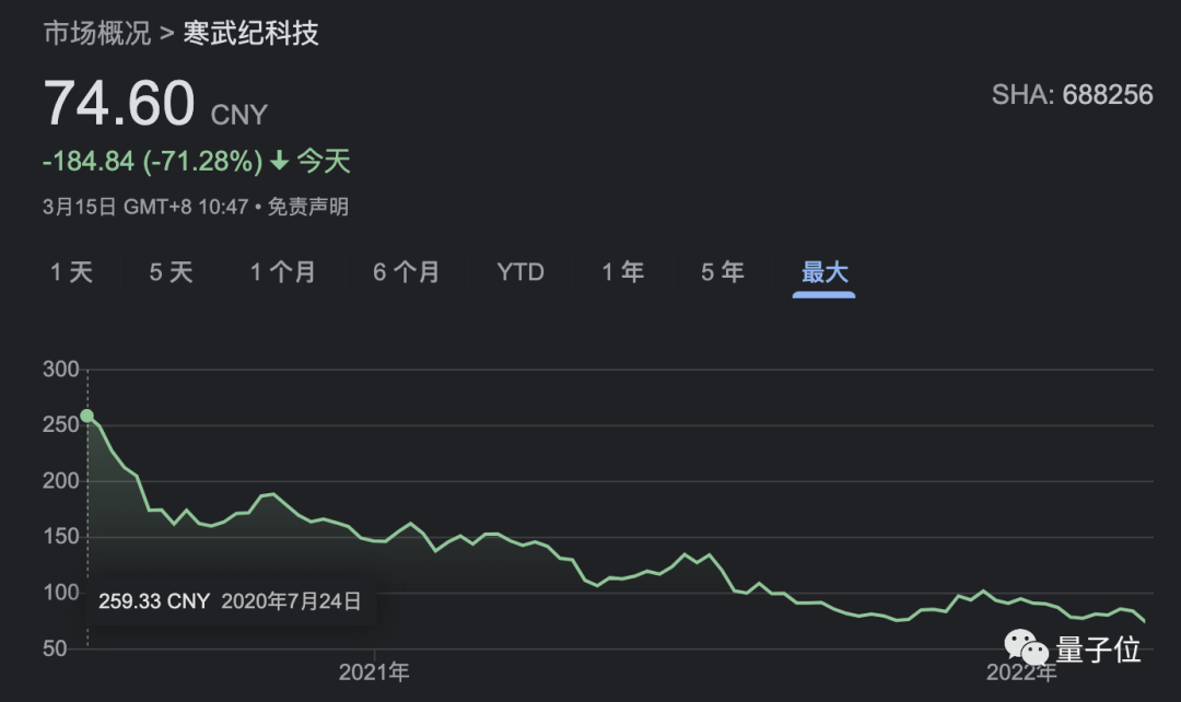 一路跌跌不休,也被市场解读为与华为分手之后,寒武纪后劲不足。