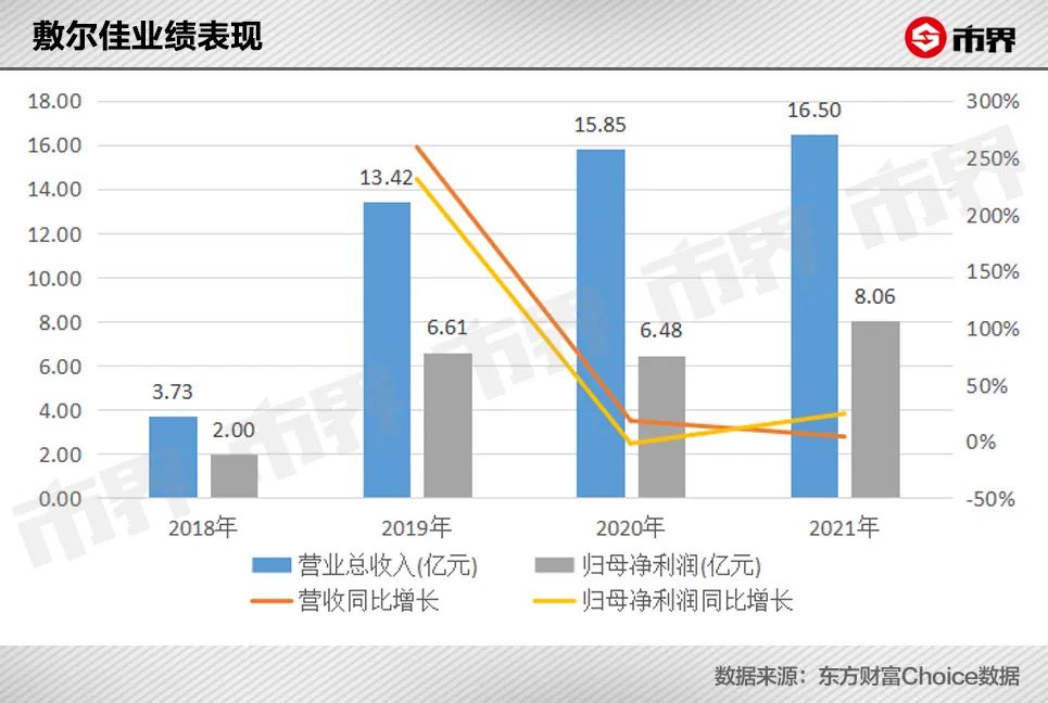 敷尔佳大概率也难逃这种规律。从公司整体业绩表现看,2020年以来,敷尔佳的业绩增速已经明显放缓。