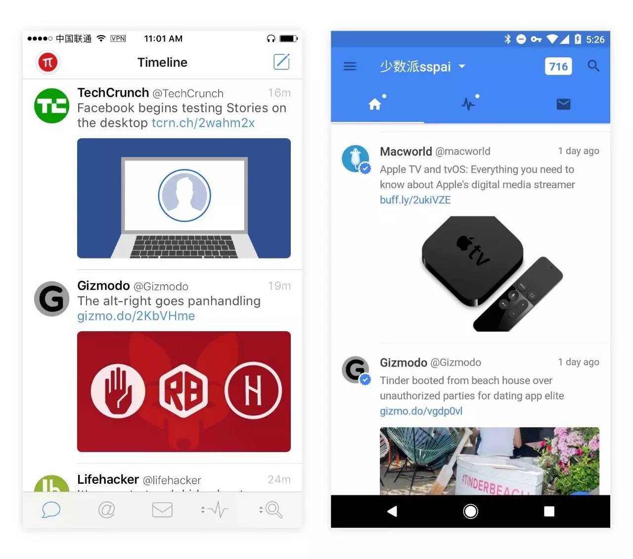 一般来说第三方客户端有着更好的设计,如 iOS 上的 Tweetbot,Android 上的 Flamingo,设计优秀,对操作系统本身的特性利用较好。