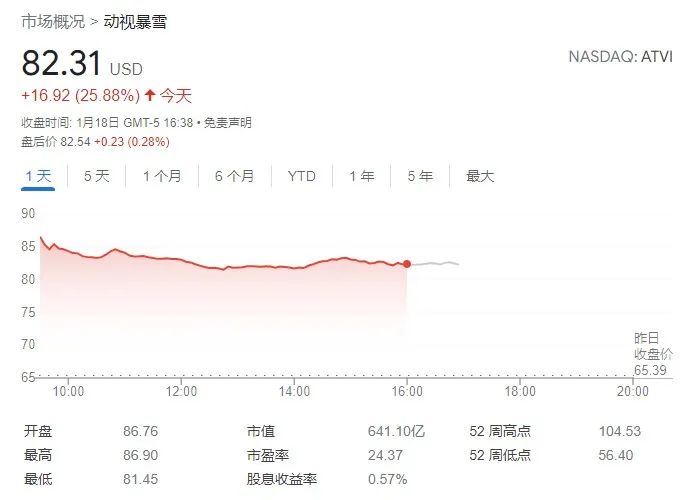 昨晚,微软官宣计划以 687 亿美元现金收购动视暴雪,动视暴雪盘前股价大涨,而微软的每股 95 美元收购价格相比动视暴雪周五收盘价溢价了 45%。消息一出,今早索尼的股价就出现了超 7% 的跌幅,盘中最大跌幅达 13%,创下自 2021 年 10 月下旬以来的最低收盘价。
